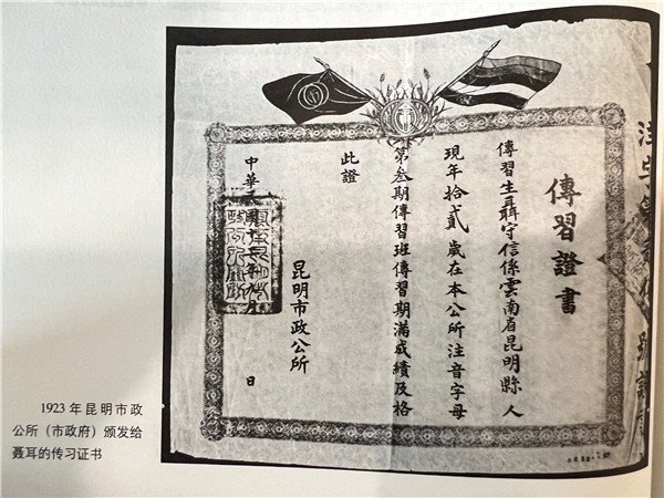 这本书也首次全面展示了聂耳在昆明的求学之路,包括他上过的昆明县立师范附高等小学、云南私立求实小学校、云南省第一联合中学、云南省立第一师范学校,发掘了从未公开的昆明市政公所(民国时期的昆明县政府)颁给聂耳的传习证书,上面明确地标识着聂耳的昆明户籍。发掘了聂耳的求实小学、第一联合中学、省立一师的毕业证书原件。