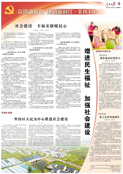 从打赢“一个都不能少”的脱贫攻坚战,近1亿农村贫困人口实现脱贫,到建成世界上规模最大的社会保障体系;从加强“一老一小”民生保障,扩大养老托育服务普惠性供给,到推进老旧小区改造、提升基层社区治理效能……党的十八大以来,在以习近平同志为核心的党中央坚强领导下,我国社会建设取得一系列突破性进展和标志性成果,社会建设全面加强,人民生活全方位改善,人民安居乐业、社会安定有序的美好画卷徐徐铺展。