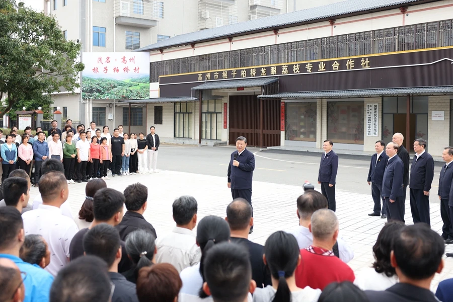 习近平11日来到茂名高州市根子镇柏桥村考察调研。柏桥村种植荔枝约6800亩,是荔枝生产专业村。习近平走进荔枝种植园,了解当地发展特色种植产业和文旅产业等情况,并同现场技术人员亲切交流。随后,习近平来到柏桥龙眼荔枝专业合作社,听取合作社运营和推进乡村振兴等情况介绍。习近平指出,这里是荔枝之乡,荔枝种植有历史传承和文化底蕴,特色鲜明,优势明显,市场空间广阔,要进一步提高种植、保鲜、加工等技术,把荔枝特色产业和特色文化旅游发展得更好。