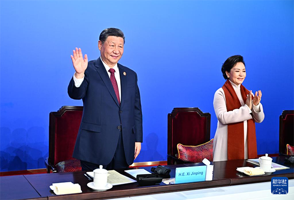 19时58分,在《和平——命运共同体》的乐曲声中,习近平和夫人彭丽媛,同国际奥委会主席巴赫、亚奥理事会第一副主席霍震霆等步入主席台,向观众挥手致意。全场响起长时间的热烈掌声。