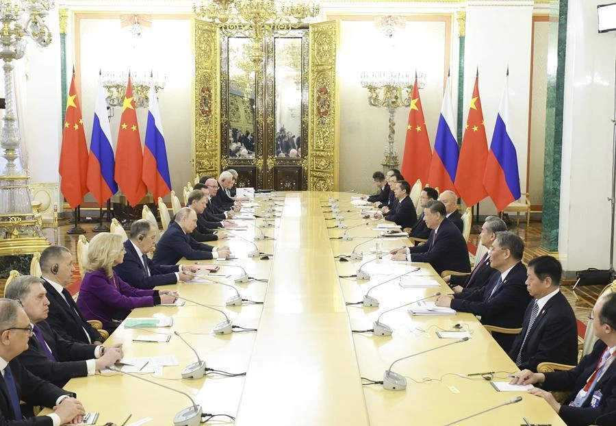 习近平指出,中俄双方要坚持合作大方向,排除外部干扰,让合作“稳”的基础更坚实、“进”的动能更充足。要发挥两国资源禀赋和产业体系互补优势,拓展经贸、能源、农业、航空航天、人工智能等领域高质量互利合作;以共建“一带一路”和欧亚经济联盟对接为平台,构建高标准互联互通格局;充分释放“中俄文化年”潜能,加强教育、电影、旅游、体育、地方等合作,促进深层次民心相通;密切在联合国、上海合作组织、金砖国家等多边平台协调和配合,团结全球南方,坚持真正的多边主义,引领全球治理变革正确方向。