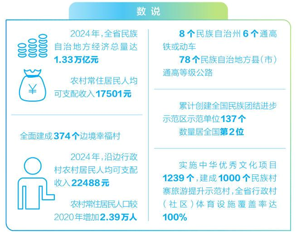 我省紧紧围绕高质量发展这个首要任务,锚定“3815”战略发展目标,大力发展“三大经济”,稳步提升发展质量,夯实民族团结进步示范区建设基础。2021年至2024年,民族自治地方地区生产总值年均增速高于全省平均水平。