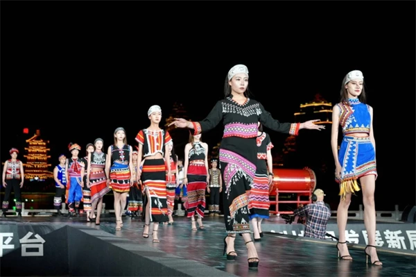 第三届临沧·百国华侨华人联谊会“温度临沧踏歌之夜”今年4月27日举办。图为活动期间举行的民族时装秀表演。白玲 摄