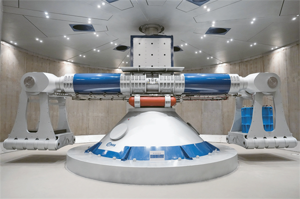 2025年9月29日,由我国完全自主研发的国家重大科技基础设施——超重力离心模拟与实验装置在浙江杭州启动首台离心机主机。未来,从深海能源开发到抗震建筑设计,从核废料处理到新材料研发,超重力离心模拟与实验装置将成为多学科研究的强大助推器。图为当日拍摄的超重力离心模拟与实验装置启动的首台离心机主机“CHIEF1300”。记者 黄宗治 摄