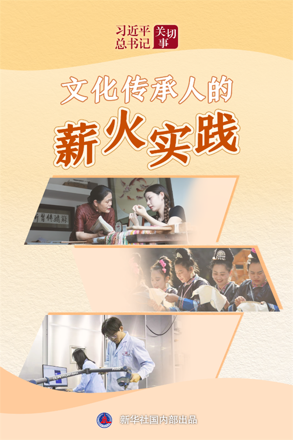 习近平总书记的殷切嘱托,由一个个文化传承人化为薪火相传的生动实践。从四代坚守的苏绣世家,到染出五彩的侗寨带头人,再到对话千年的敦煌守护者……他们以匠心守护千年文脉,通过活化发展与科技创新激活古老技艺,让传统文化在时代浪潮中焕发新生,文明之火跨越山海永续传递。
