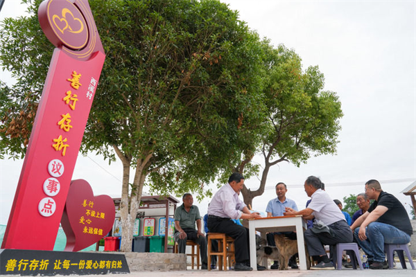 2025年6月12日,在江苏省宝应县广洋湖镇西溪村,当地党群服务中心的工作人员组织村民进行议事会。新华社记者 李博 摄