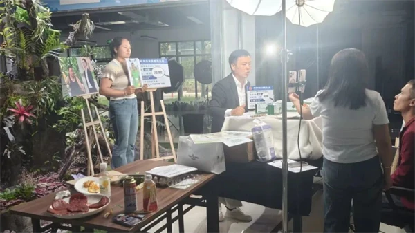 图为呈贡电商产业园内,主播正直播带货。图源:呈贡电商产业园