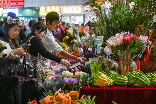 图为市民在斗南花市挑选鲜花。图源:中新社记者 李嘉娴 摄