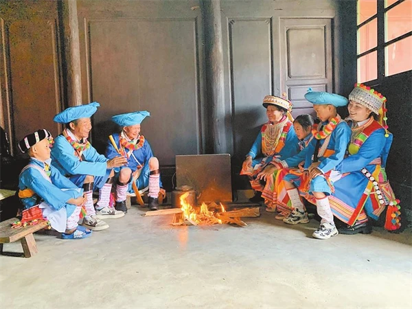 腾冲市猴桥镇猴桥村傈僳族村民围坐在火塘边共话孝老爱亲好家风。腾冲市委宣传部 供图