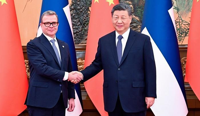 1月27日上午,国家主席习近平在北京人民大会堂会见来华进行正式访问的芬兰总理奥尔波。