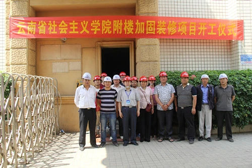 本站讯 经过多方努力和前期积极充分的准备工作,云南社院附楼加固装修项目已走完了初设评审、施工图审查、招投标等基建程序,于4月23日下午3时在现场举行了开工仪式,附楼加固装修项目进入了全面施工阶段。