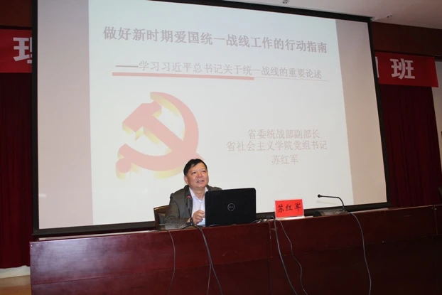苏红军从充分认识深入学习贯彻习近平总书记系列重要讲话精神的重大意义;全面学习把握习近平总书记关于统一战线的重要论述精神;切实把握习近平总书记系列重要讲话贯穿的思想精髓三个方面,就如何做好新时期统战工作进行了两个小时的专题授课。
