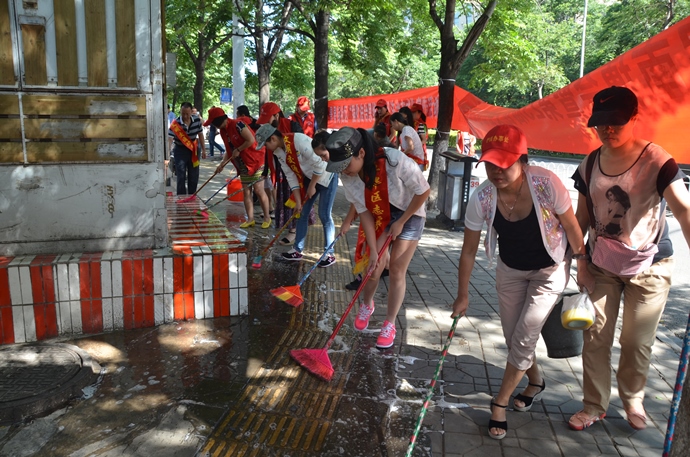 活动当天,志愿者们一大早来到护国街道景星社区,戴上手套,拿起扫帚、水桶、垃圾袋等工具,清理道路旁边绿化带,清除烟头、塑料袋等垃圾,并铲除“牛皮癣”小广告,清扫路面、清洁宣传栏,为社区营造清爽整洁的居住环境。志愿者们积极的清理和认真的态度给路过的市民做出了良好的榜样,也极大的加深了市民对志愿活动的认识,不仅清理了路面垃圾,大力宣传爱护卫生、保护环境的重要意义,更让市民对城市环境保护的重要性有了更深的认识,传递正能量。