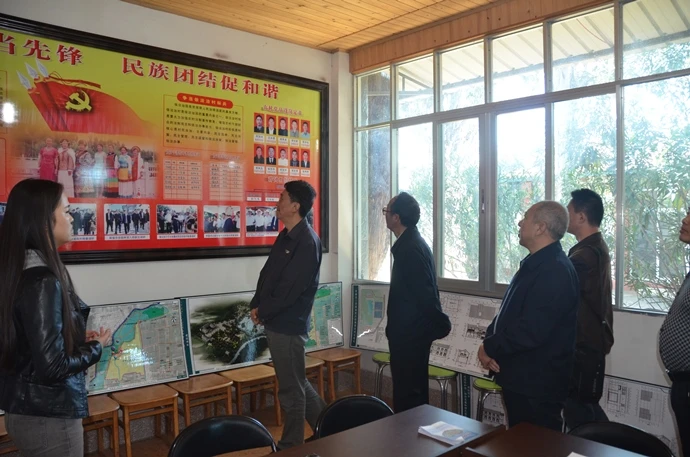 郑家庄是一个汉族、白族、藏族、傣族、纳西族、傈僳族、彝族等多民族聚居自然村寨,村容整洁、绿树掩映、环境优美、宁静祥和、其乐融融。在郑家庄一名义务解说员的带领下,赵明辉一行一一参观了郑家庄入村宣传栏、污水净化池、村内湿地公园、村民广场、各民族祭祀点、三营镇党建示范点、村民治安联防队、郑家庄老年活动中心等标志性场所,并重点了解了郑家庄内部组织建设、民主管理建设、社会治安以及帮扶小组建设等方面的有益经验和做法。(云南社院 曾捷)