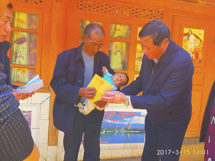 3月15日下午,学院党组成员、副院长彭立峰带队对学院挂钩帮扶的丰乐村进行了进村入户调查回访和慰问工作。在炼曲、大坪自然村,彭立峰深入挂钩帮扶的农户段毕松、段进松、段桂龙家中,与他们面对面交谈,询问他们2016年帮扶产业发展、家庭收入、子女受教育等情况,以及他们2017年家庭经济发展计划情况,实地察看省社院2016年产业帮扶发放的商品猪及政府扶持的牛、续断、烤烟、核桃等产业发展情况,并对他们在产业发展和教育发展方面提出了具体指导和建议,倾听他们在生产生活中存在的实际困难和诉求,鼓励他们增强脱贫致富的信心。同时,根据入户访谈和实地察看情况,他仔细记录了贫困户的生产生活情况和遇到的困难等情况,认真填写了《洱源县扶贫攻坚“挂包帮”“转走访”工作手册》。在进村入户访谈、调查活动中,彭立峰等领导还为挂钩贫困户送去了大米、食用油等慰问品和慰问金,同时慰问了学院下派洱源县的3名扶贫干部。