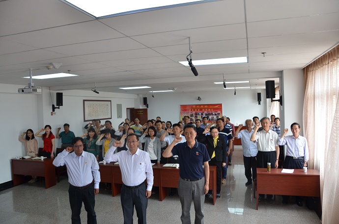 会议在庄严的《中华人民共和国国歌》声中拉开帷幕。赵明辉同志传达学习了《云南省社会主义学院机关党委关于开展共产党员“政治生日”活动的实施方案》,组织全体党员重温入党誓词。杨春禄同志宣读了《中共云南省社会主义学院党组关于表彰2017-2018年度先进基层党支部、优秀共产党员、优秀党务工作者的通知》,通报学院获得省直机关工委和省委统战部直属单位党委有关表彰情况,参会领导为受表彰的先进基层党支部和优秀个人颁发了荣誉证书。