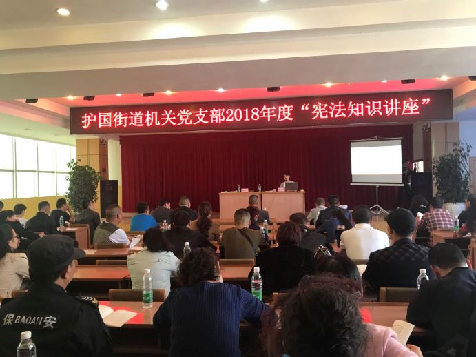 本站讯 为加强宪法学习,弘扬宪法精神,普及宪法知识,增强干部职工的宪法意识,4月12日,护国街道办事处邀请云南警官学院杨志芳教授为辖区各公共单位、党员作“新时代、新宪法、新作为”专题辅导讲座,学院积极选派部分教职工参加辅导。