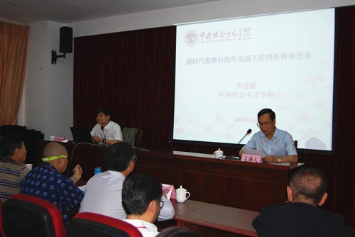 李道湘教授从深入学习贯彻习近平新时代港澳台海外统战工作重要论述、新时代港澳台海外统战工作的基本方针政策和任务、新时代港澳台海外统战工作面临的挑战、新时代港澳台海外统战工作的新思维等四个方面进行了系统讲述。他强调,开展港澳台海外工作要有大统战思维、更要有底线思维。李道湘教授以深厚的理论功底和丰富的实际案例,为听讲人员认真学习贯彻习近平新时代中国特色社会主义思想之统一战线思想,进一步做好新时代港澳台海外统战工作理清了思路、指明了方向,授课得到大家的欢迎和普遍好评。