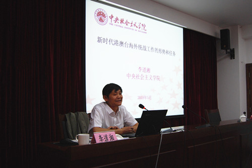 本站讯 5月22日上午,为深入学习贯彻党的十九大报告提出的“广泛团结联系海外侨胞和归侨侨眷,共同致力于中华民族伟大复兴”的精神,做好新时代港澳台海外统战工作,省社会主义学院专门邀请中央社会主义学院党组成员、教务长李道湘教授作题为《新时代港澳台海外统战工作的形势和任务》的专题讲座。