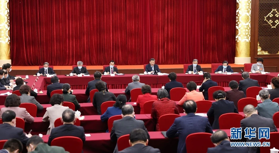 3月6日,中共中央总书记、国家主席、中央军委主席习近平看望参加全国政协十三届四次会议的医药卫生界、教育界委员,并参加联组会,听取意见和建议。中共中央政治局常委、全国政协主席汪洋参加看望和讨论。新华社记者 鞠鹏 摄