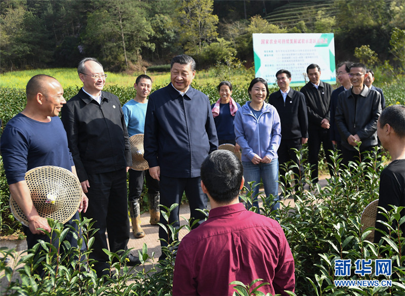 3月22日至25日,中共中央总书记、国家主席、中央军委主席习近平在福建考察。这是22日下午,习近平在南平武夷山市星村镇燕子窠生态茶园,同科技特派员、茶农亲切交流,了解当地茶产业发展情况。 新华社记者 燕雁 摄