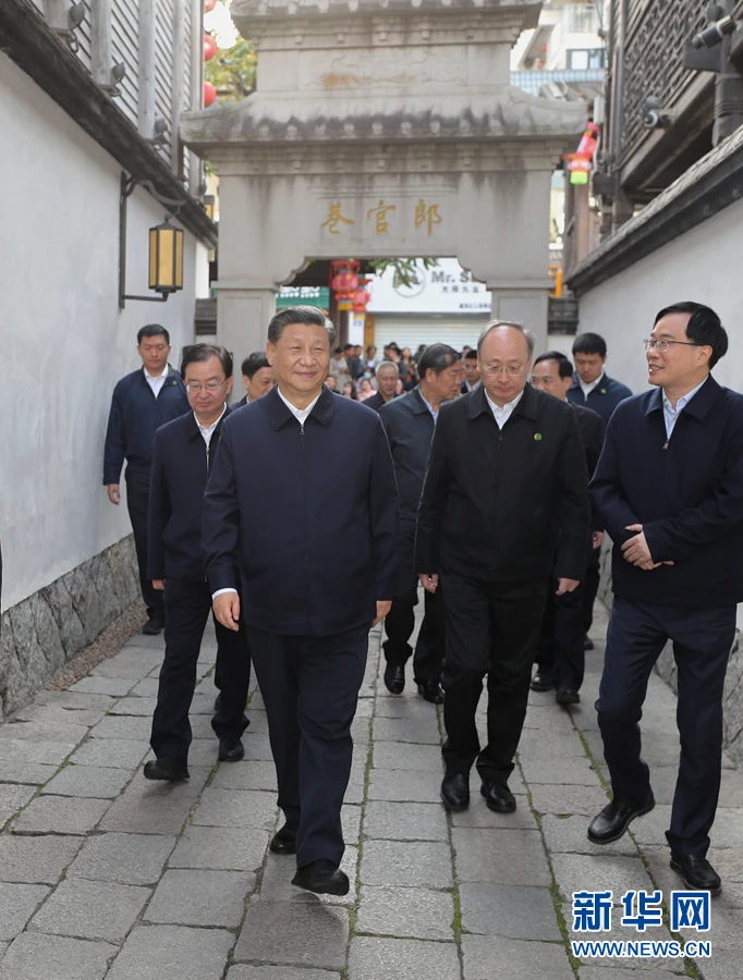 3月22日至25日,中共中央总书记、国家主席、中央军委主席习近平在福建考察。这是24日下午,习近平在福州三坊七巷历史文化街区步行察看南后街。 新华社记者 王晔 摄