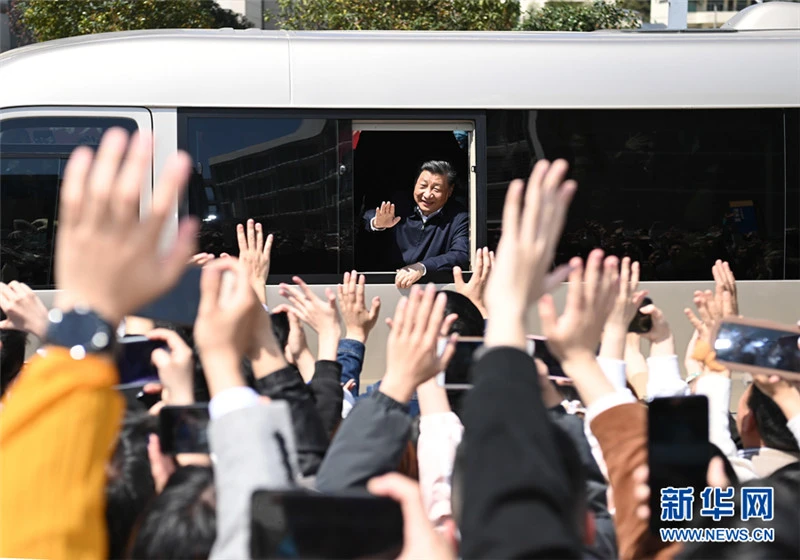 3月22日至25日,中共中央总书记、国家主席、中央军委主席习近平在福建考察。这是25日上午,习近平在福州闽江学院考察时,向师生们挥手致意。 新华社记者 燕雁