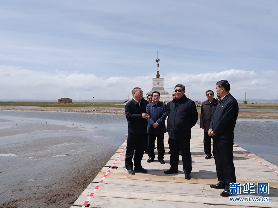 6月7日至9日,中共中央总书记、国家主席、中央军委主席习近平在青海考察。这是8日下午,习近平在海北藏族自治州刚察县青海湖仙女湾考察。新华社记者 李学仁 摄