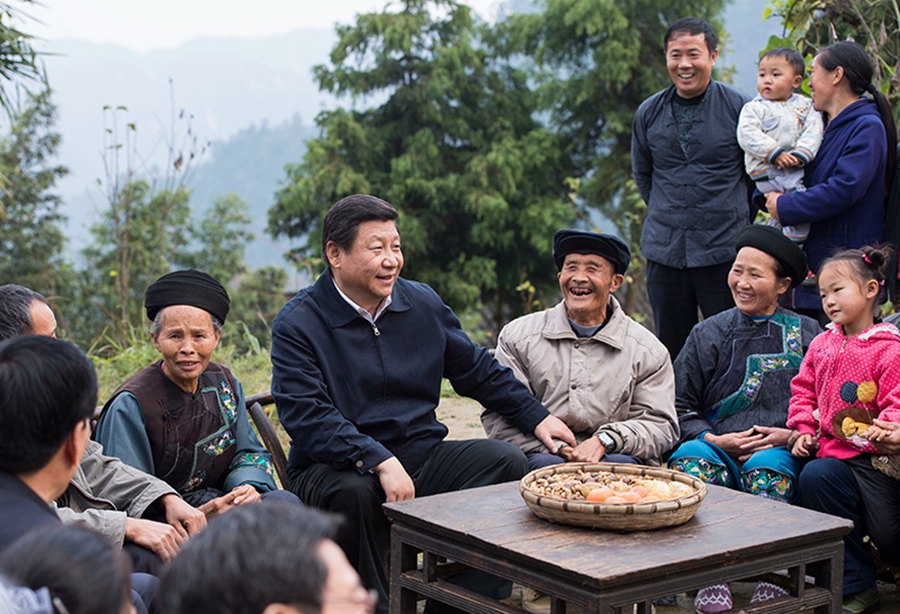 2013年11月3日,习近平在湖南湘西土家族苗族自治州花垣县排碧乡十八洞村与村干部、村民座谈。