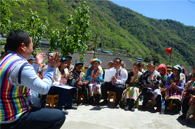 云南省贡山县独龙江乡干部群众一同宣读学习习近平总书记的回信