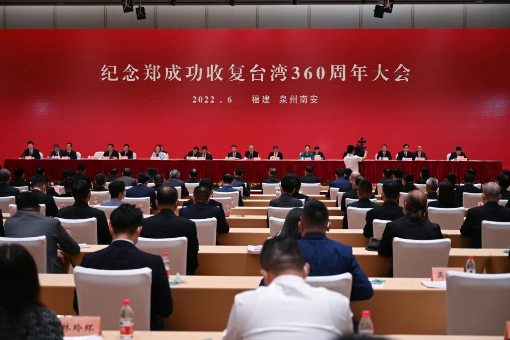 以“弘扬郑成功爱国主义精神,维护国家统一,捍卫民族尊严”为主题的纪念郑成功收复台湾360周年大会6月14日上午在郑成功故里福建泉州南安市举行。海峡两岸各界500余人在南安市主会场和台湾嘉义县分会场出席。