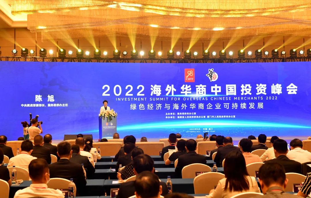 9月8日,由国务院侨办主办的2022海外华商中国投资峰会(简称“海华会”)在厦门召开。本次峰会主题为“绿色经济与海外华商企业可持续发展”。中央统战部副部长、国务院侨办主任陈旭出席会议并致辞。