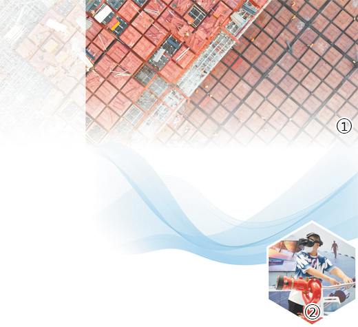 图①:江西省赣州经开区新能源科技城的一家企业项目工地,工人在铺设高标准厂房浇筑模板钢筋。 |