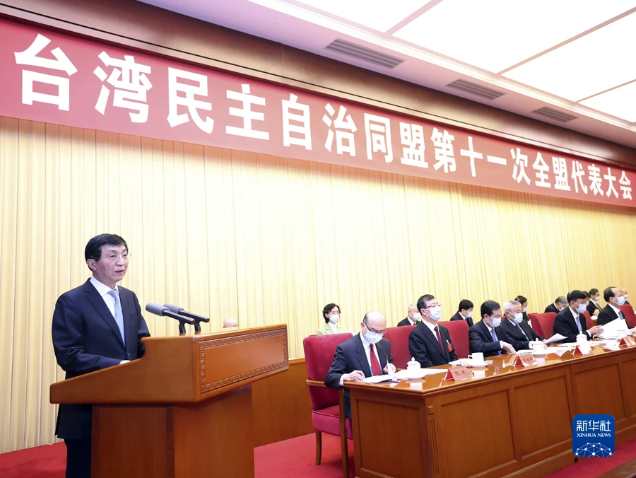 12月7日,台湾民主自治同盟第十一次全盟代表大会在北京开幕。中共中央政治局常委王沪宁代表中共中央致贺词。 新华社记者鞠鹏摄
