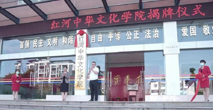 本站讯 7月29日上午,红河中华文化学院揭牌仪式在红河州社会主义学院举行,这是云南省首家州市社院加挂中华文化学院牌子。同时举行了座谈会和中华文化讲座。省社会主义学院(云南中华文化学院)常务副院长何云葵,副院长陈友康,红河州委常委、州委统战部部长朱毅及有关部门领导参加揭牌活动。活动由红河州社会主义学院常务副院长张态强主持。