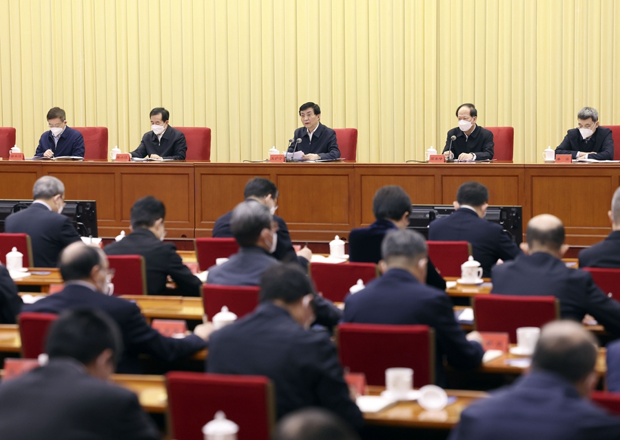 1月10日,全国统战部长会议在北京召开。中共中央政治局常委王沪宁出席会议并讲话。新华社记者 刘卫兵 摄