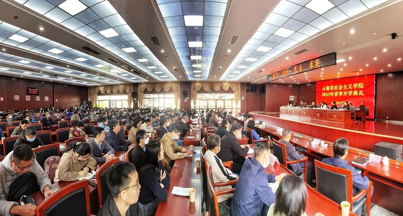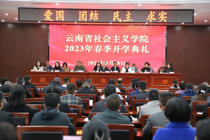 本站讯 3月20日上午,云南省社会主义学院举行2023年春季开学典礼。省委统战部副部长,省社会主义学院党组书记岳宁出席并讲话,民革云南省委专职副主委王智勇代表各民主党派省委、省工商联和无党派人士致辞。各民主党派省委、省民宗委、省工商联、省台联、省侨联、省黄埔军校同学会、云南中华职教社领导,省社院领导班子成员出席开学典礼。省社院常务副院长何云葵主持开学典礼。