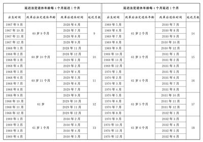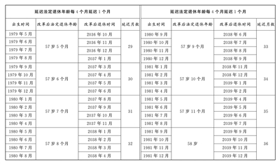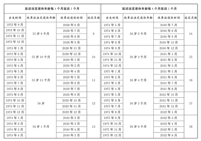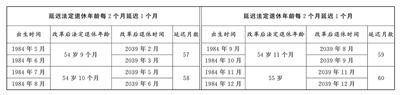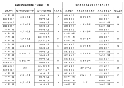 2.原法定退休年龄五十五周岁的女职工延迟法定退休年龄对照表