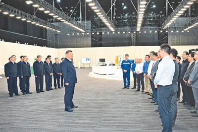 随后,习近平来到合肥滨湖科学城,察看安徽省重大科技创新成果集中展示,听取当地推进科技体制机制创新、加快科技成果转化等情况介绍,同现场科研人员和企业负责人亲切交流。他在智能网联汽车、新一代信息技术、新能源、人工智能、生命健康等高新科技产品前一一驻足,仔细察看,不时表达赞赏之意。习近平指出,推进中国式现代化,科学技术要打头阵,科技创新是必由之路。高新技术是讨不来、要不来的,必须加快实现高水平科技自立自强。科研工作者是推进中国式现代化的骨干,要拿出“人生能有几回搏”的劲头,放开手脚创新创造,为建设科技强国奉献才智、写下精彩篇章。
