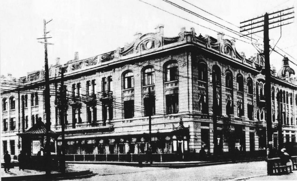 当时民主人士下榻的马迭尔宾馆外景。