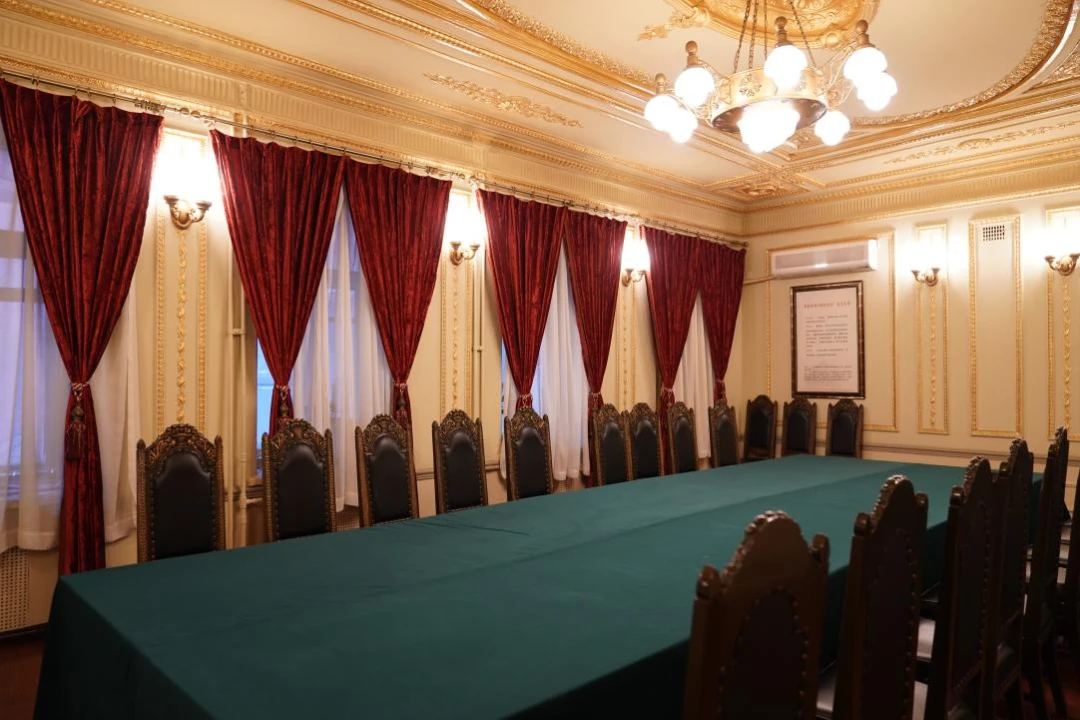 在马迭尔宾馆二楼的“一号会议室”,依旧保留着当年的陈设和样貌。1948年10月21日、10月23日、11月15日,三次“新政协诸问题座谈会”在这间会议室里召开。
