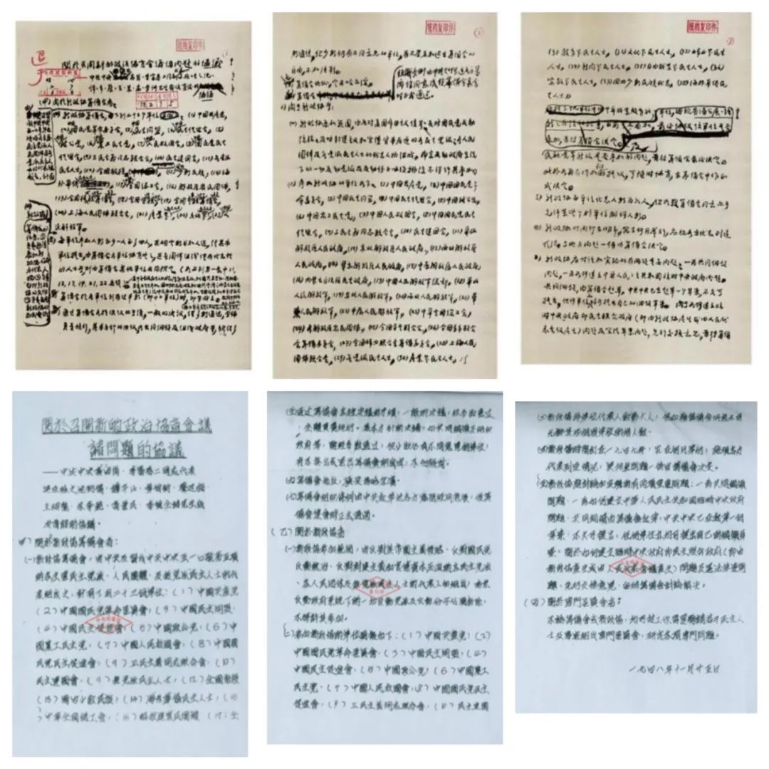 《关于召开新的政治协商会议诸问题的协议》手稿及印刷件。