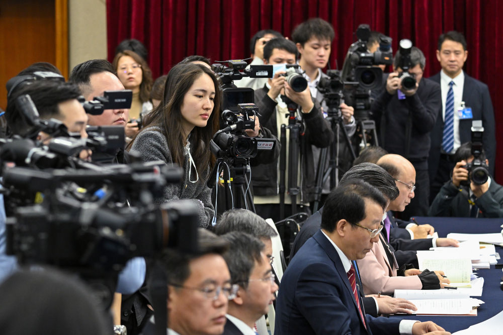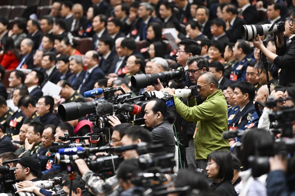 开放日活动上,中外记者架起“长枪短炮”,把镜头对准代表:山东代表团把三分之一的提问机会给了境外媒体;面对来听会的教育部部长怀进鹏,湖南代表团十多名代表反映教育难题,部长认真记录……