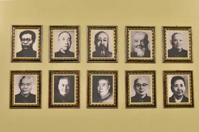 图为哈尔滨马迭尔宾馆二楼会议室悬挂的民主人士肖像,中共中央东北局代表曾在这里与沈钧儒、谭平山、章伯钧、蔡廷锴、王绍鏊、朱学范、高崇民等人举行会谈,商议新政协的逐项事宜。
