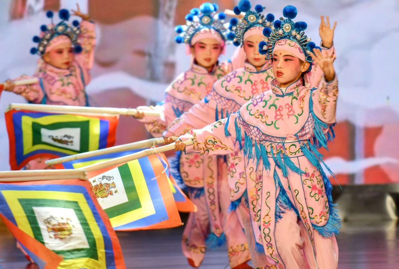 11月29日,云南省昆明市五华区文林小学在五华区青少年宫开展滇剧演出活动,专业滇剧演员和滇剧传习班的学生共同表演节目。新华社发(彭奕凯 摄)