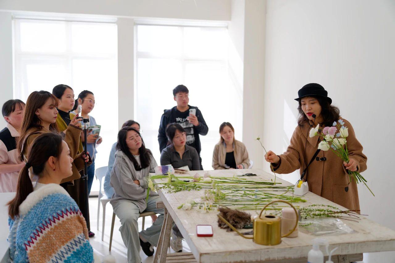 12月8日,在昆明市云南花伍科技股份有限公司,花艺师向学员讲解花束制作方法。新华社记者 高咏薇 摄