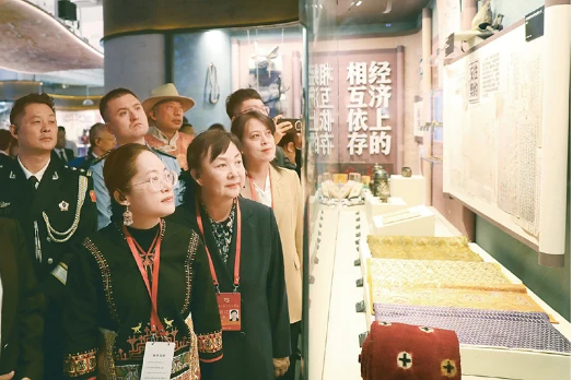 2024年9月28日至10月1日,全国少数民族参观团在北京参观考察,感受新时代伟大成就。图为参观团在民族文化宫参观铸牢中华民族共同体意识文物古籍展,了解中华民族共同体形成发展的历史。民族画报社供图 陈涛 摄