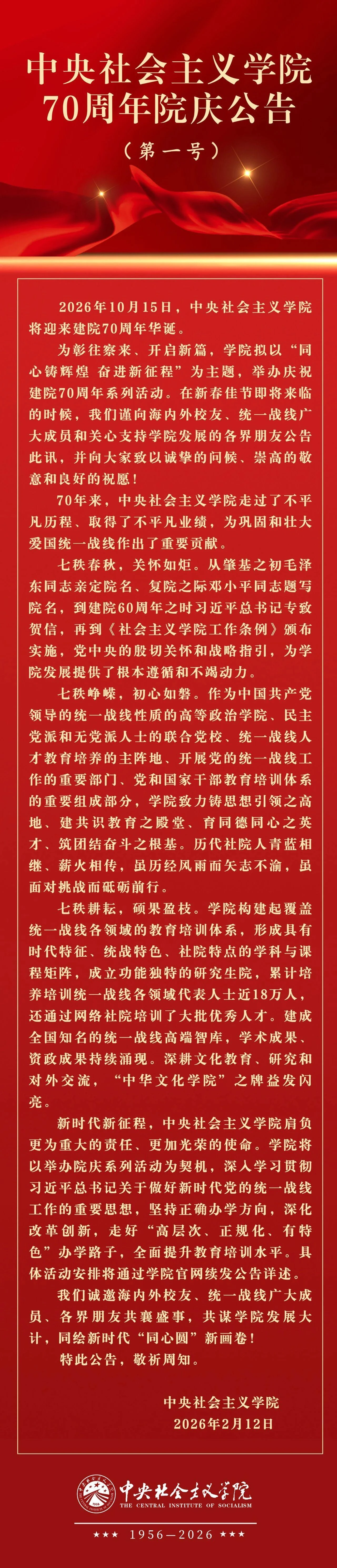 下一篇:中央社会主义学院70周年院庆标识(logo)征集启事 2026-02-25