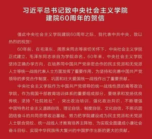 2016年10月,中央社院建院60周年之际,习近平总书记专致贺信。