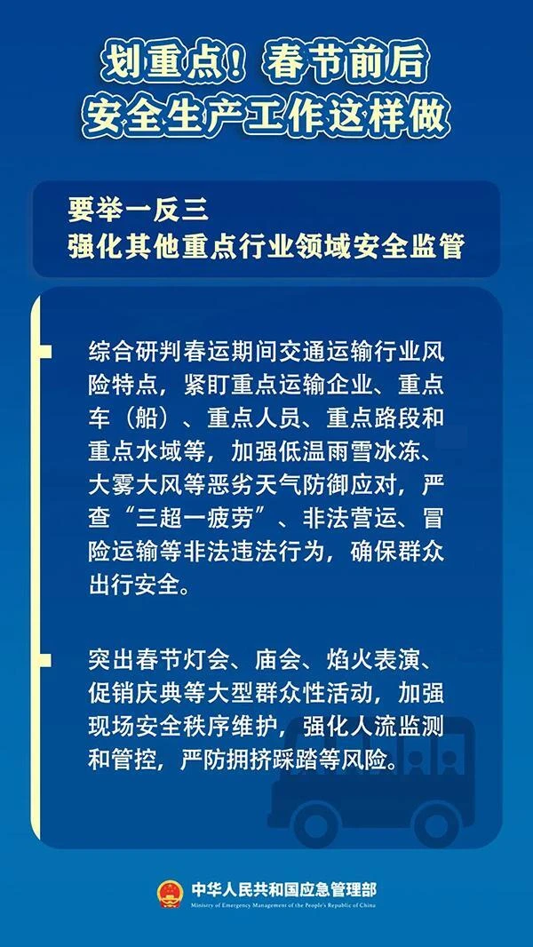 如何抓好春节前后安全生产工作?2月3日,国务院安委会办公室印发紧急通知,部署以下重点工作。